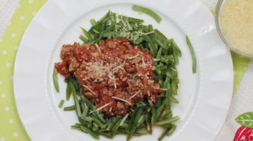 Low Carb Spaghetti Meat Sauce over Green Beans